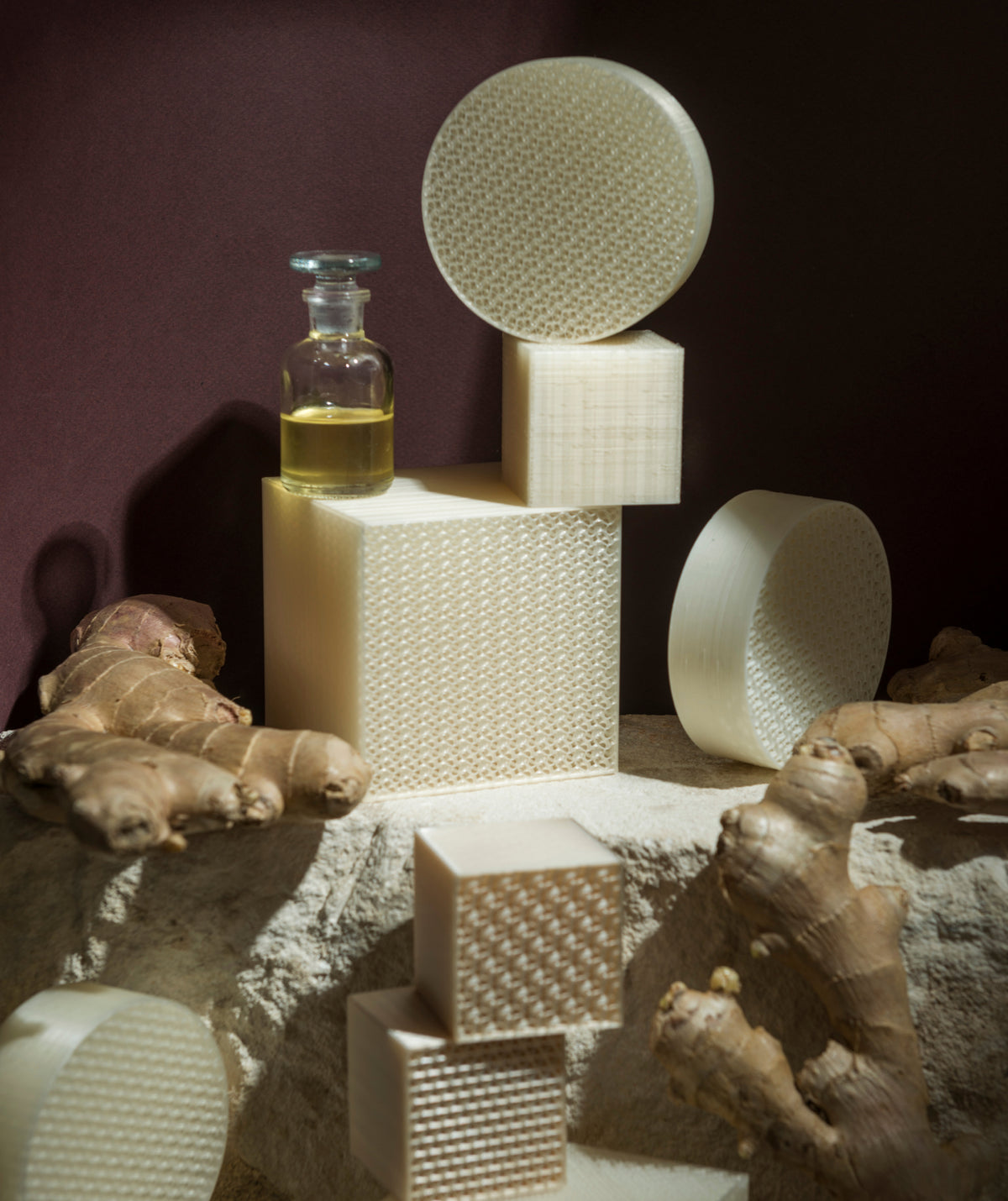 Scents are deeply tied to our memories, while materials influence nearly every aspect of human activity, along with the consequences of their use. In our ongoing exploration of smell, we aim to uncover the connection between this most enigmatic sense and an innovative alternative to synthetic plastics—guiding us between the natural and the synthetic.