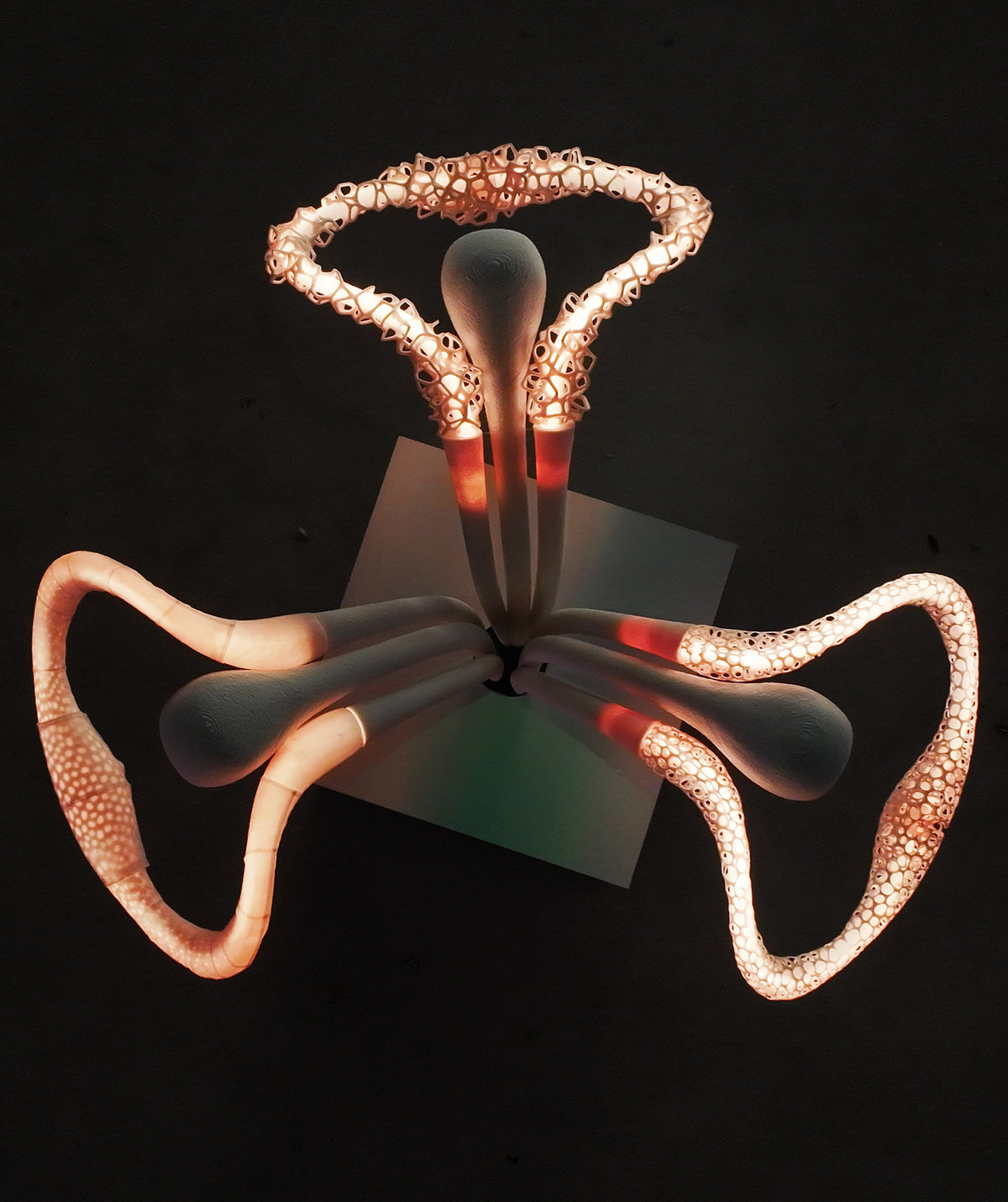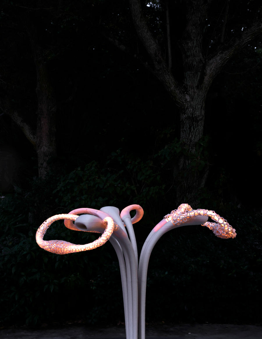 Through our collaboration with Lexus, we presented Liminal Cycles, a series of interactive, sensory-responsive sculptural pieces displayed at ICA Miami 2024. This four-part installation engaged viewers through sight, smell, sound, and touch, incorporating reactive color changes, amplified soundscapes, and aromatic mists. It depicted the Lexus LF-ZC concept car as a living organism harmoniously integrated with its surroundings.