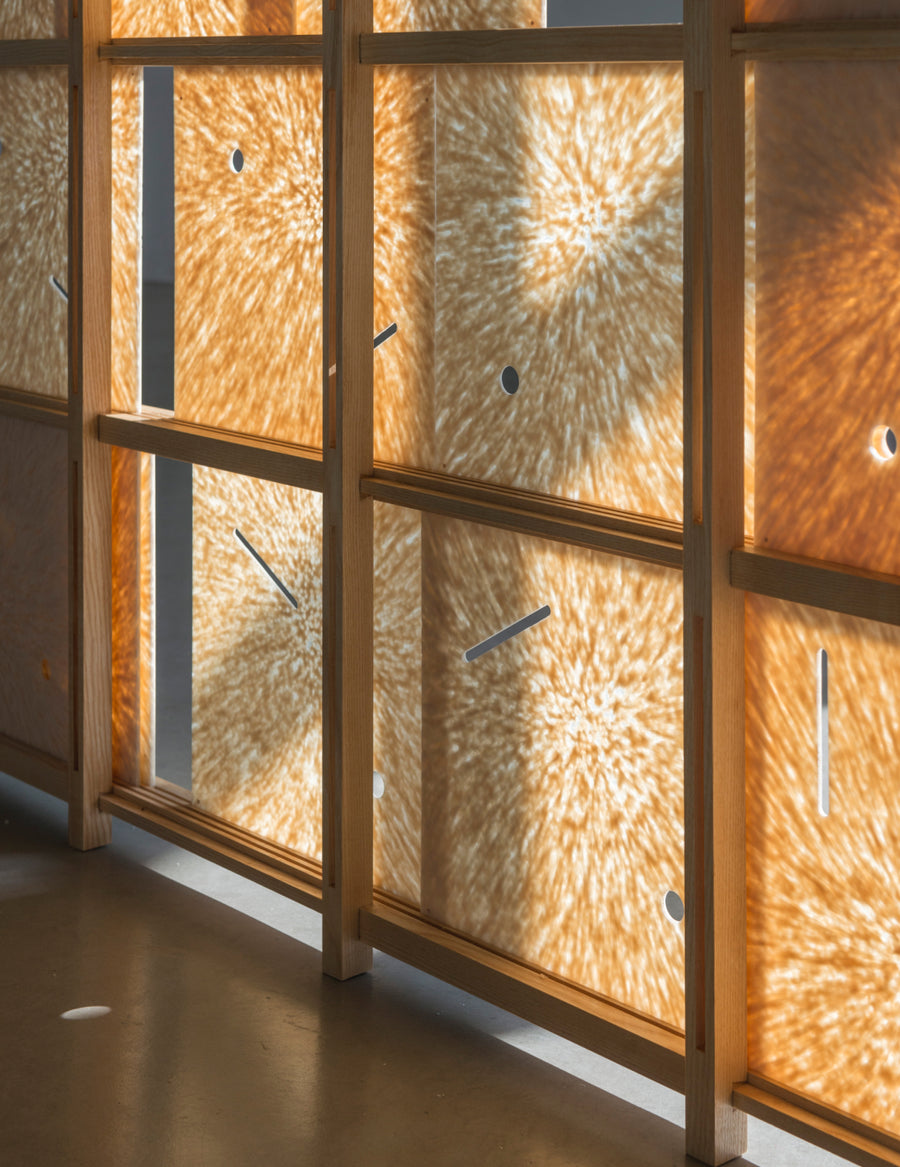 As time passes, the materials evolve, aging gracefully. The bioplastic sheets, translucent and dynamic, shift in appearance daily, reacting to light and weather. By sliding individual panels, viewers can either reveal the natural world behind them or transform the window’s visuals, creating an ever-changing interaction.